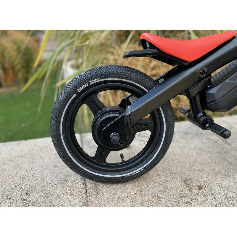 Le toute nouvelle draisienne BMW Kidsbike EVO est équipée d'un moteur de 350w intégré dans la roue arrière, cette nouvelle conception sans chaîne de transmission ne necessite pas d'entretien et favorise la sécurité de nos petits pilote.